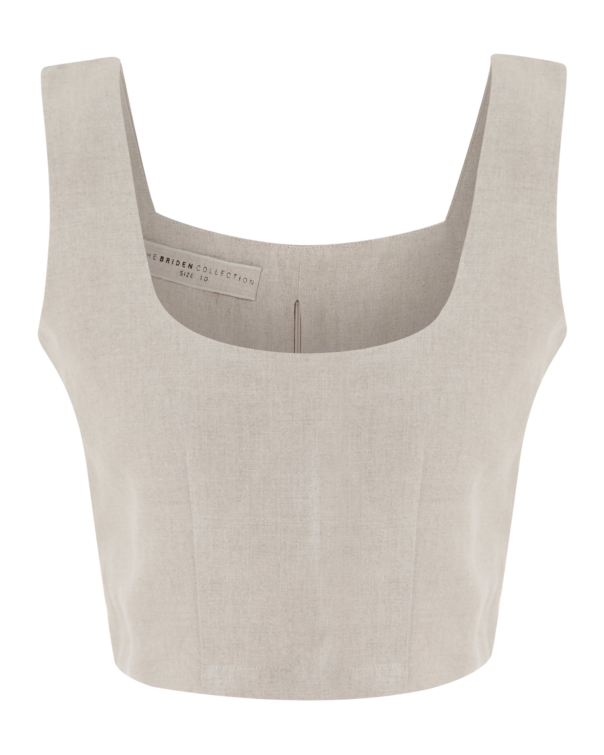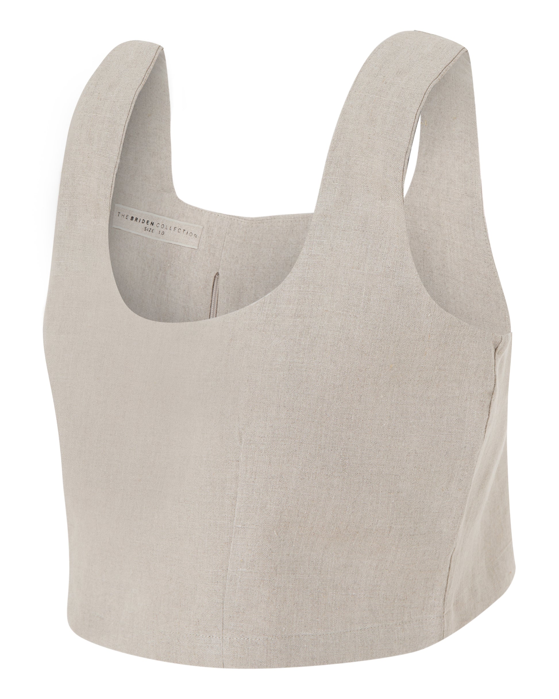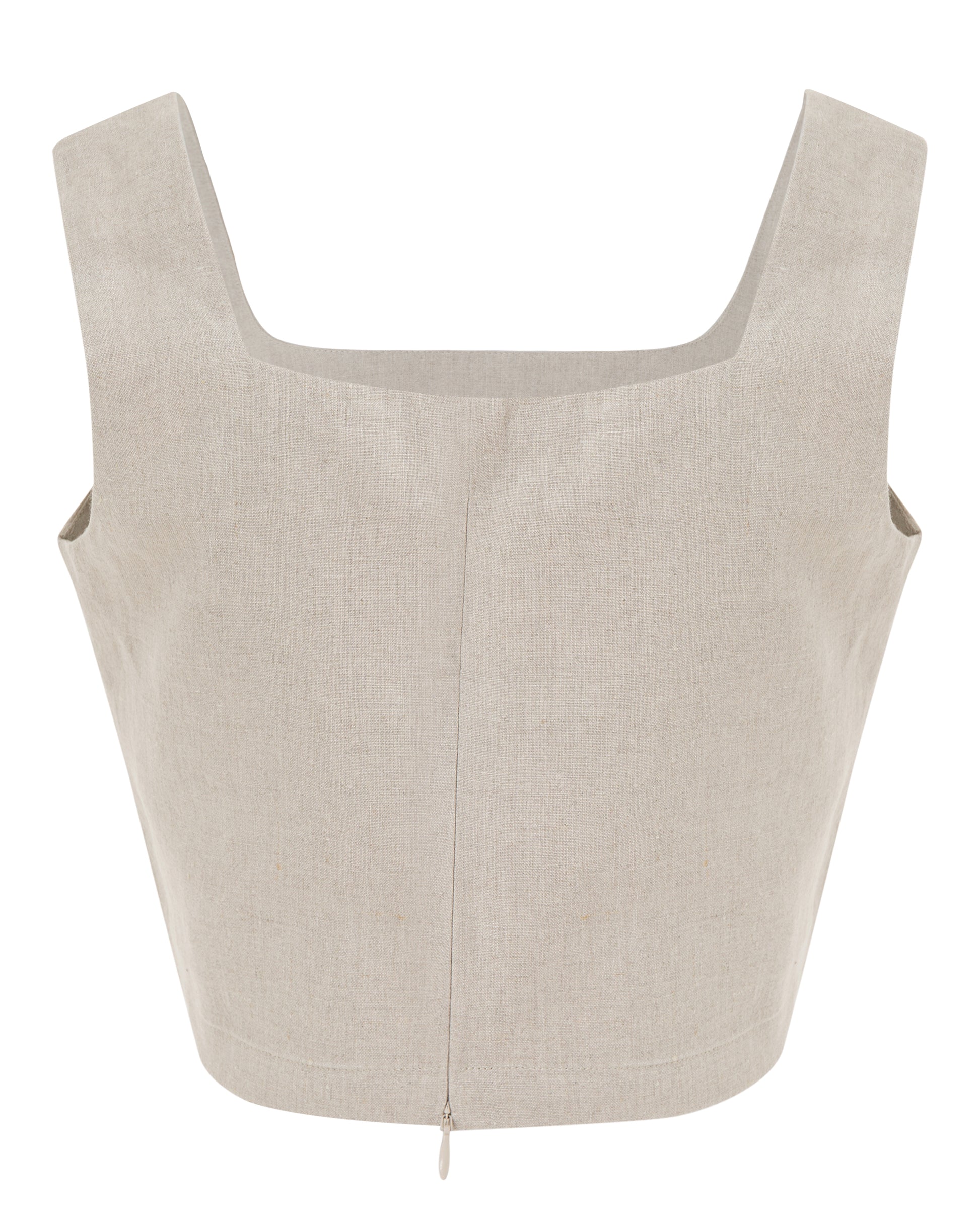 Made from 100% linen, the crop top is a soft, breathable fabric that's fully lined for a luxurious feel. It has been designed with a flattering round neckline to the front and square to the back, with a concealed colour match zip fastening.